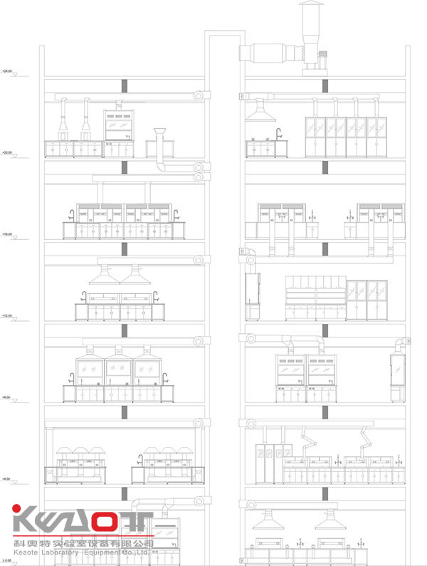 科奧特通風系統根據不同的實驗需求采用不同的通風方式,各系統或獨立或共用以達到高效排污的目的。合理的設計即保證實驗環境的需求又為用戶合理利用資金。