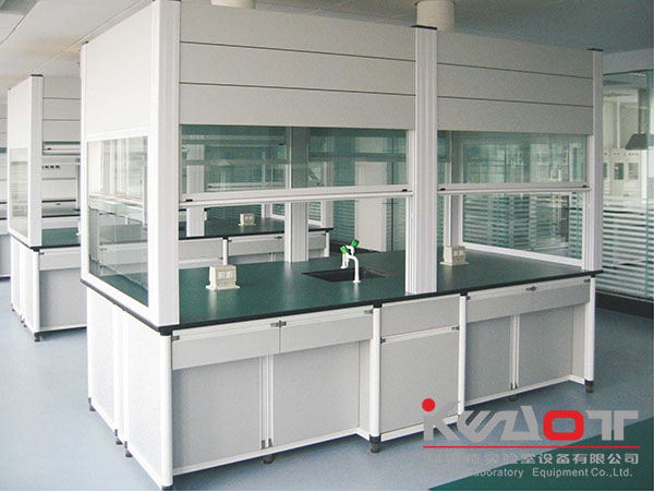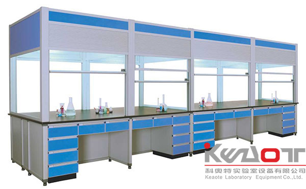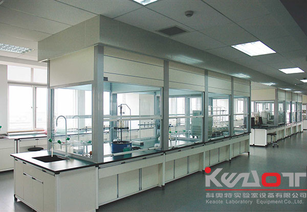 對于有機溶劑等揮發性氣體較多且化學反映較強烈的實驗室,可采用柜式通風方式,直接、及時、且有害氣體不易擴散。有機實驗室均采用這種方式風管走在柜上,四周用鋼化玻璃,操作視窗雙面可開,柜式排風是有機實驗室的特色。